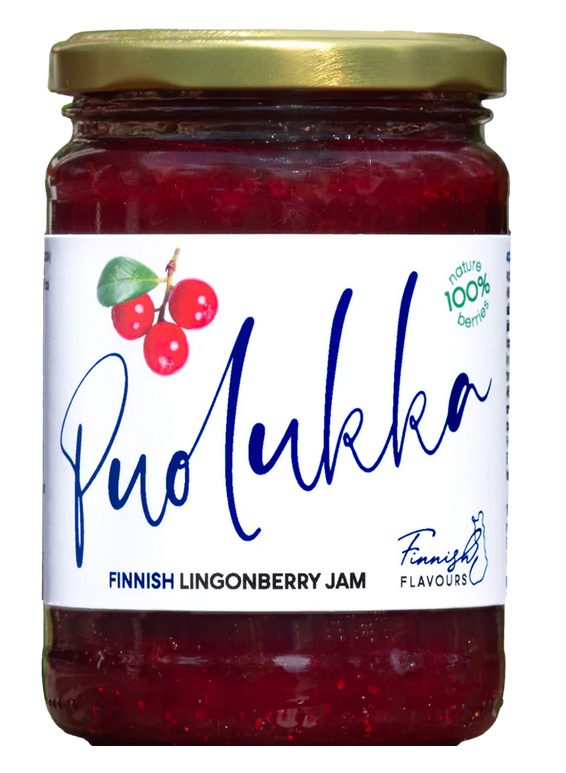 Lingonberry is Northern nature's own super berry, which has ideal acidity for both savoury and sweet accompaniment. Genuine delicacies from the pure, unspoiled nature of the north brought to your dining table - Finnish Flavours lingonberry jam is exclusively made from berries picked from the Finnish forest, with zero compromises on quality. Traditional lingonberry jam is an excellent addition to spinach pancakes, meatballs, and game. The product is made in Finland from 100% Finnish berries. 400g
