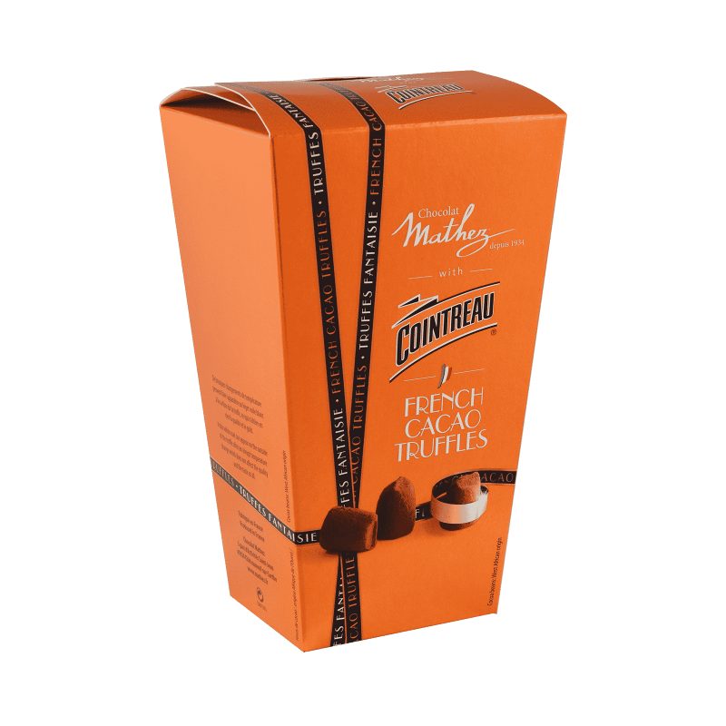This recipe of truffle Fantasy with Cointreau offers you a perfect marriage between the orange peel essences of the famous French liqueur and the cocoa touches. It is the result of a close collaboration between the Maison Mathez and the Cointreau Distillery, with an original collection of boxes and ballotins. 250g gift box