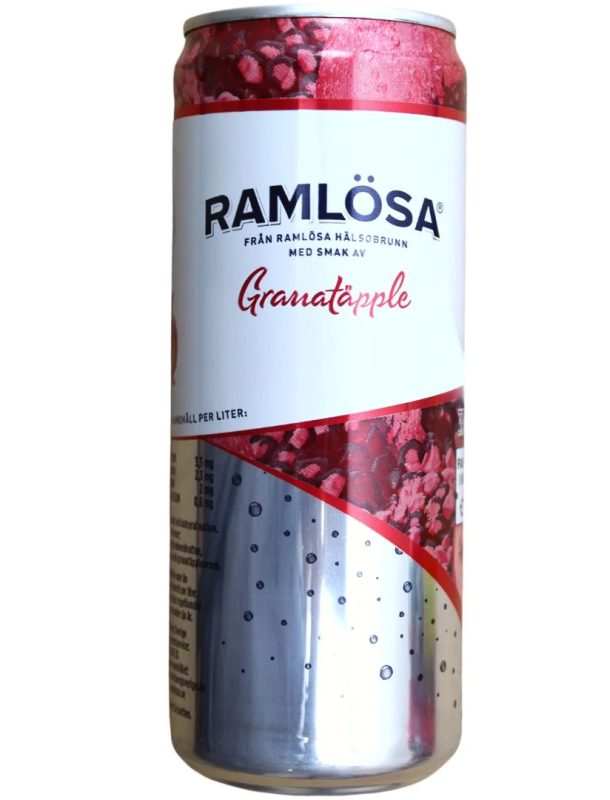 Premium carbonated mineral water from a source in Ramlösa Brunnspark in the southern part of Helsingborg, Sweden. Ramlösa goes back to the year 1707 when a health spa around the source was founded by Johan Jacob Döbelius. Pomegranate flavored. 330ml can