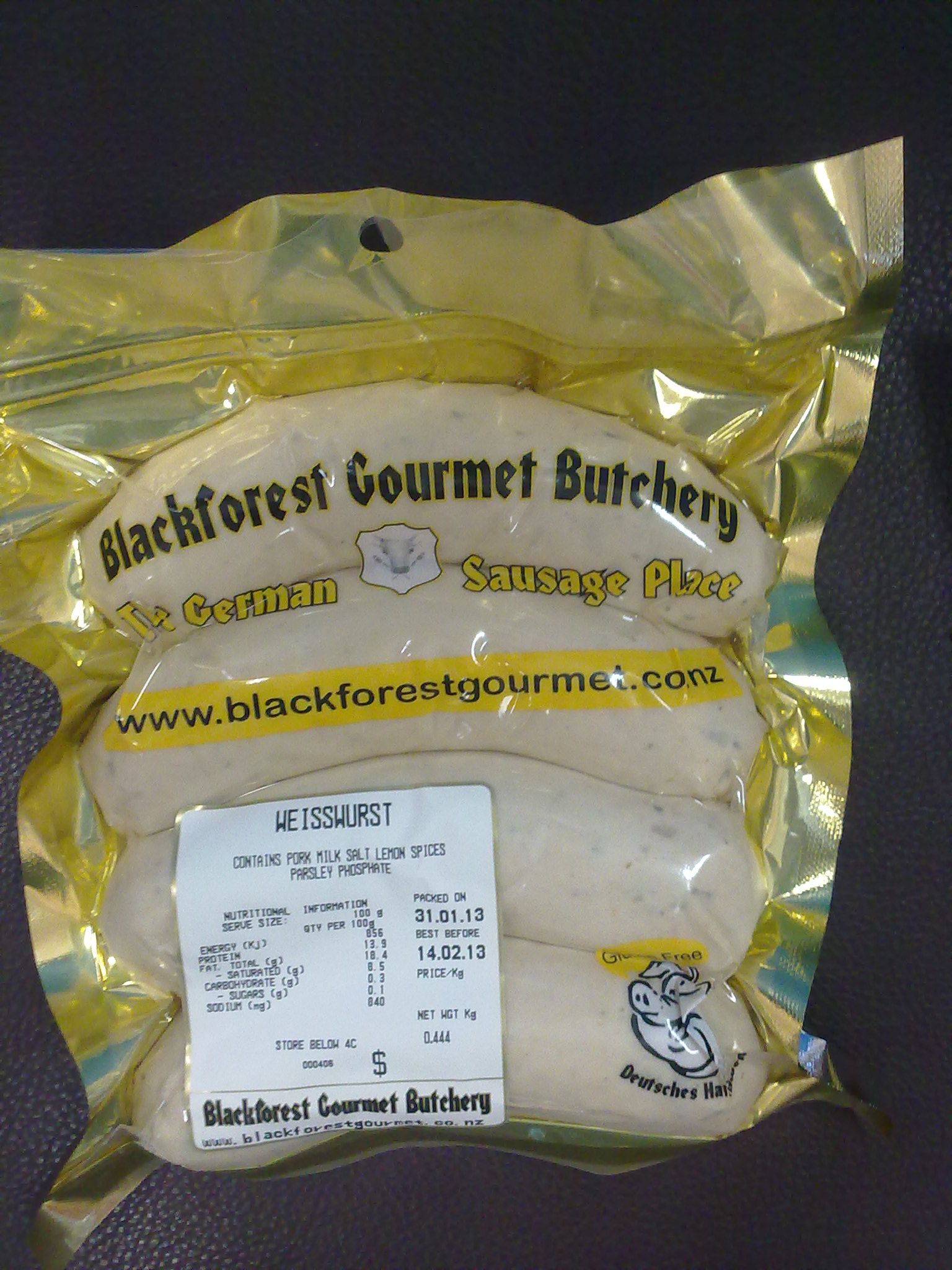 Made in NZ to a traditional German recipe. Pack includes 4 weisswurst, approx 450g