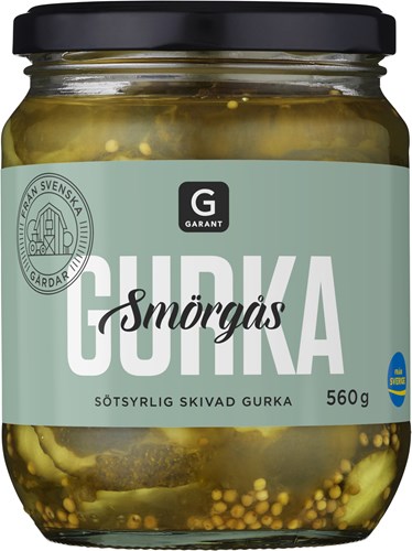 Classic Swedish-style sweet & sour crispy gherkin slices, perfect for sandwiches, hamburgers, hot dogs or just as a delicious side dish. 560g glass jar