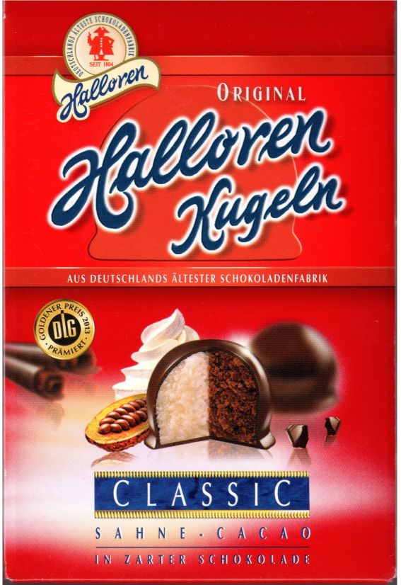 The original Halloren kugeln made in the oldest chocolate factory in Germany. The Halloren kugeln Cream Cacao are filled with creamy cocoa in dark chocolate. Crispy on the outside, creamy on the inside! Gluten free. 130g