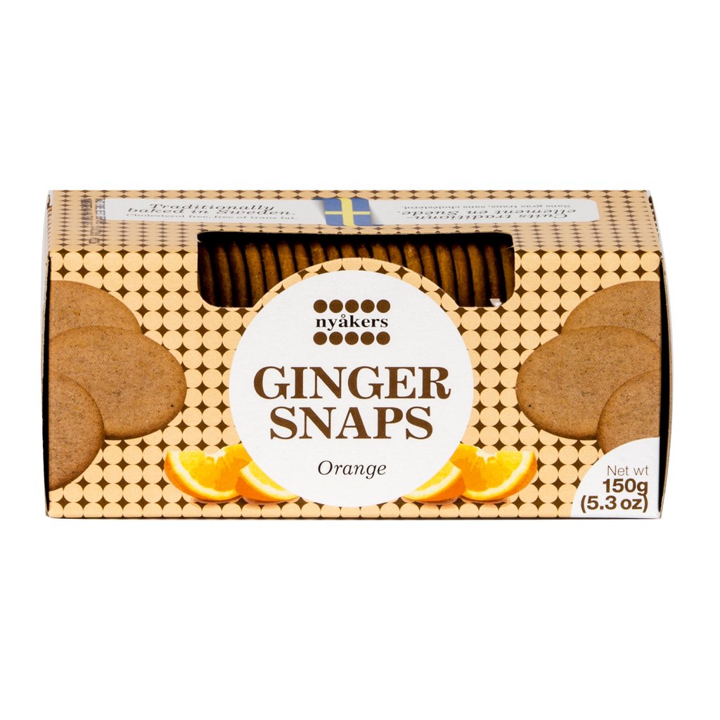 Nyåkers Pepparkakor is the oldest gingerbread biscuit bakery in Sweden, with a long tradition behind it. Nyåkers Pepparkakor have their own secret recipe and a very special taste. Orange flavored gingersnaps, Suitable for vegans and vegetarians. 150g