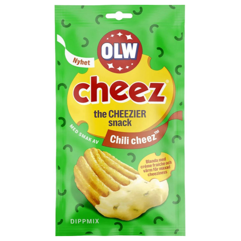Delicious and creamy dip with a cheddar cheese and chili flavor. OLW's Dippmix chili cheez is a new variation on the dip that can also be heated when mixed with crème fraiche or another heatable base. OLW's chili cheez dip tastes fantastic with most things. Of course with snacks but also with tacos, fries and on hamburgers. Mumz! 23g